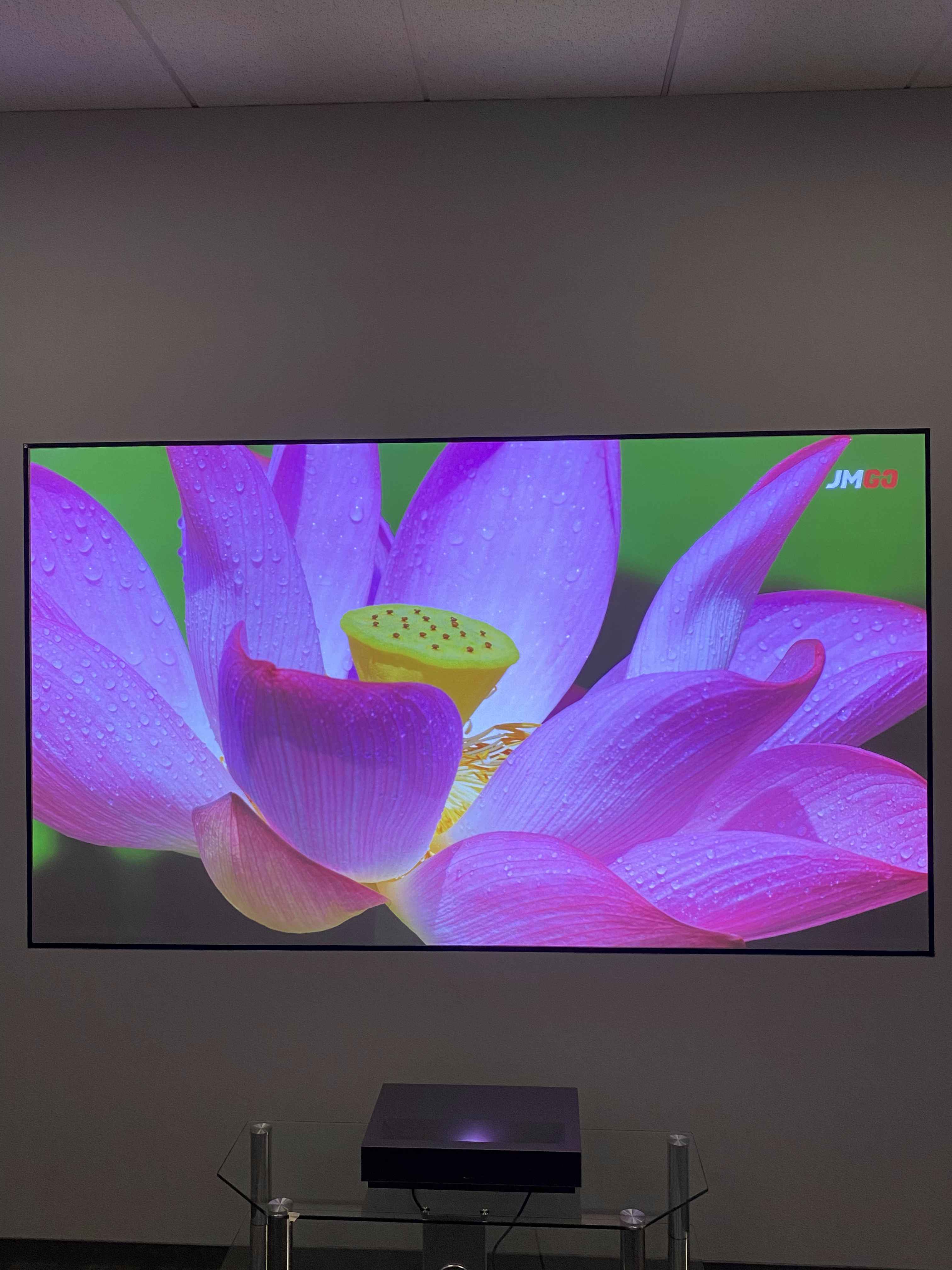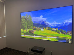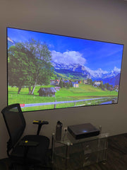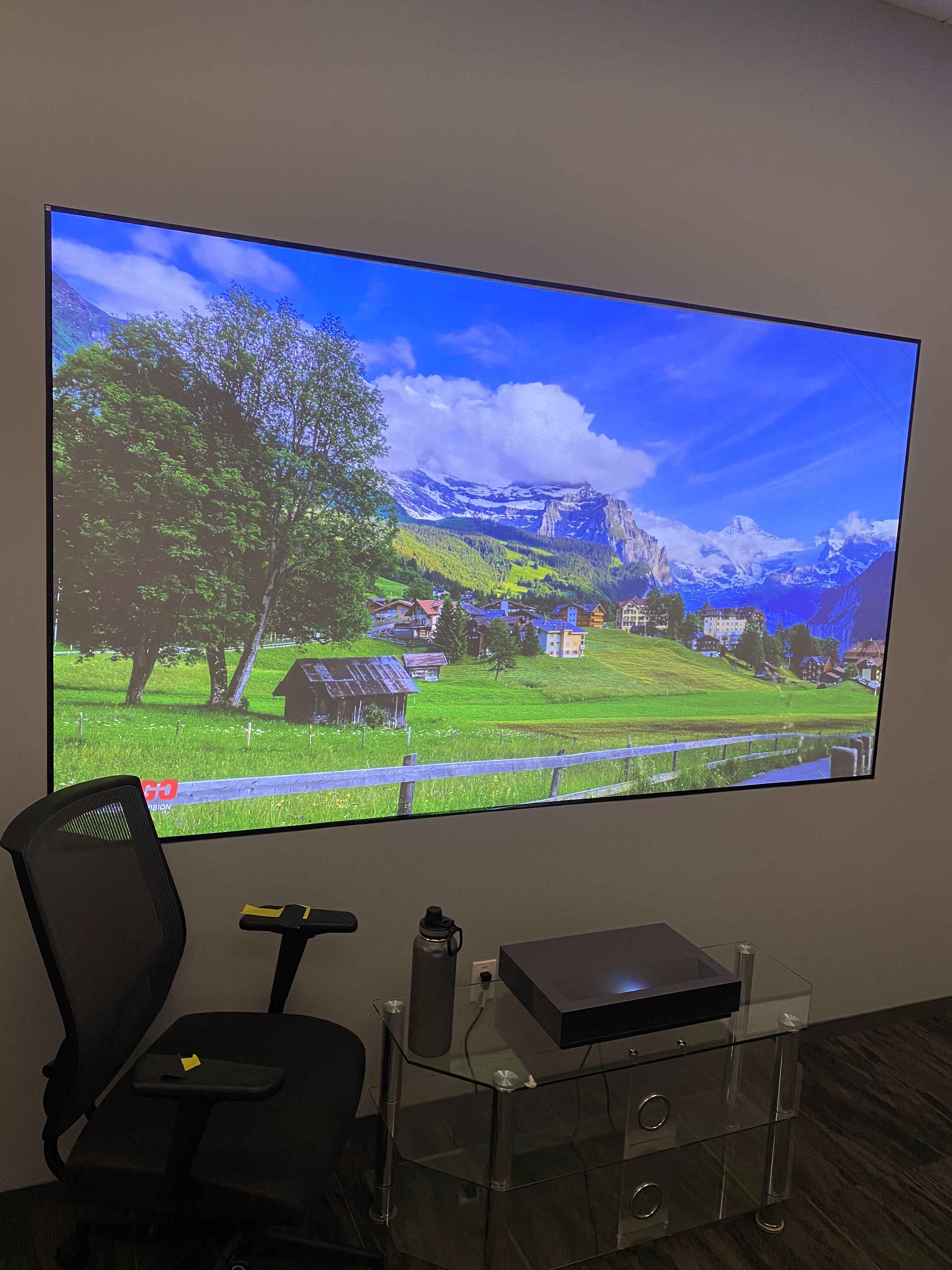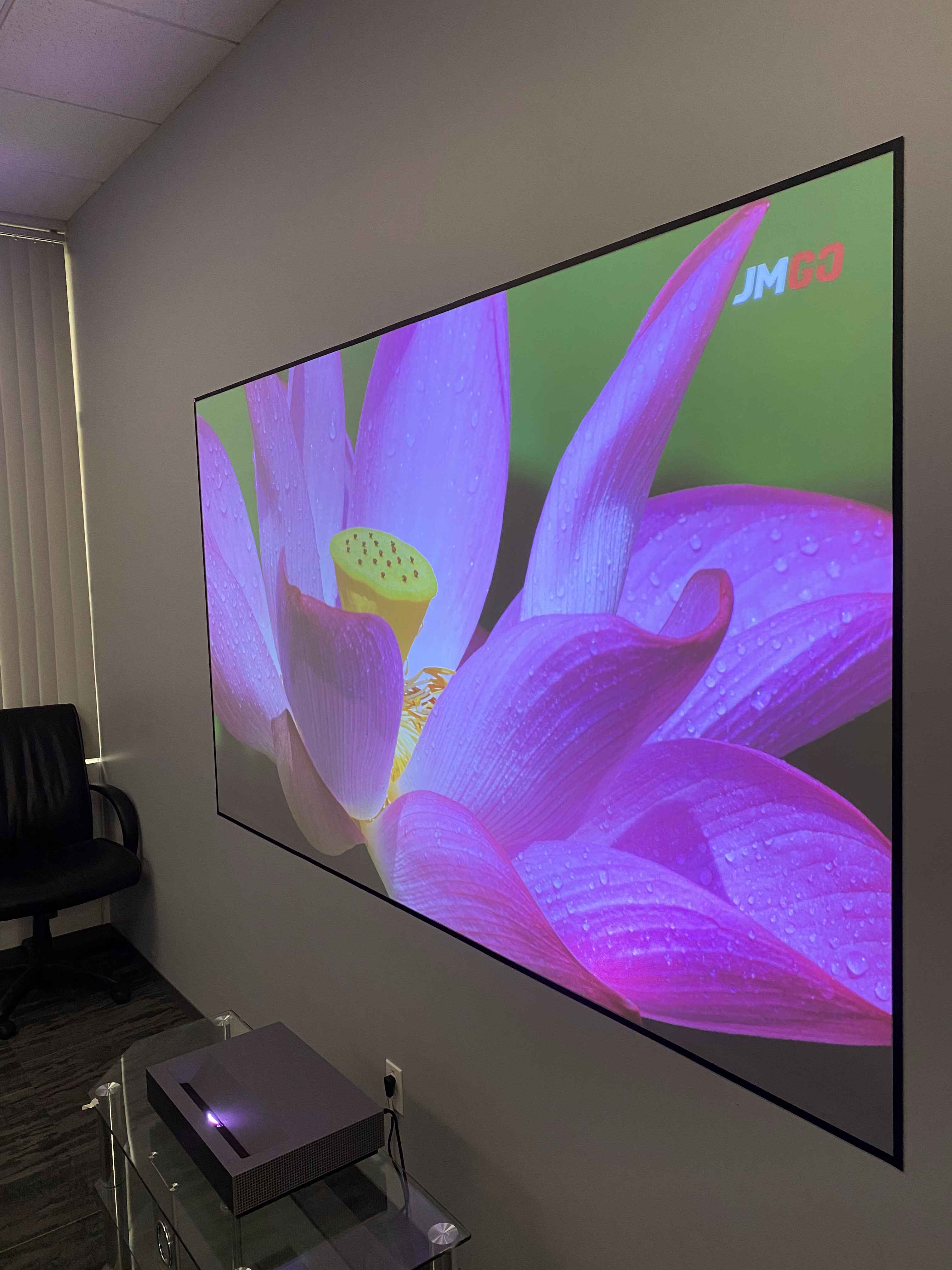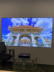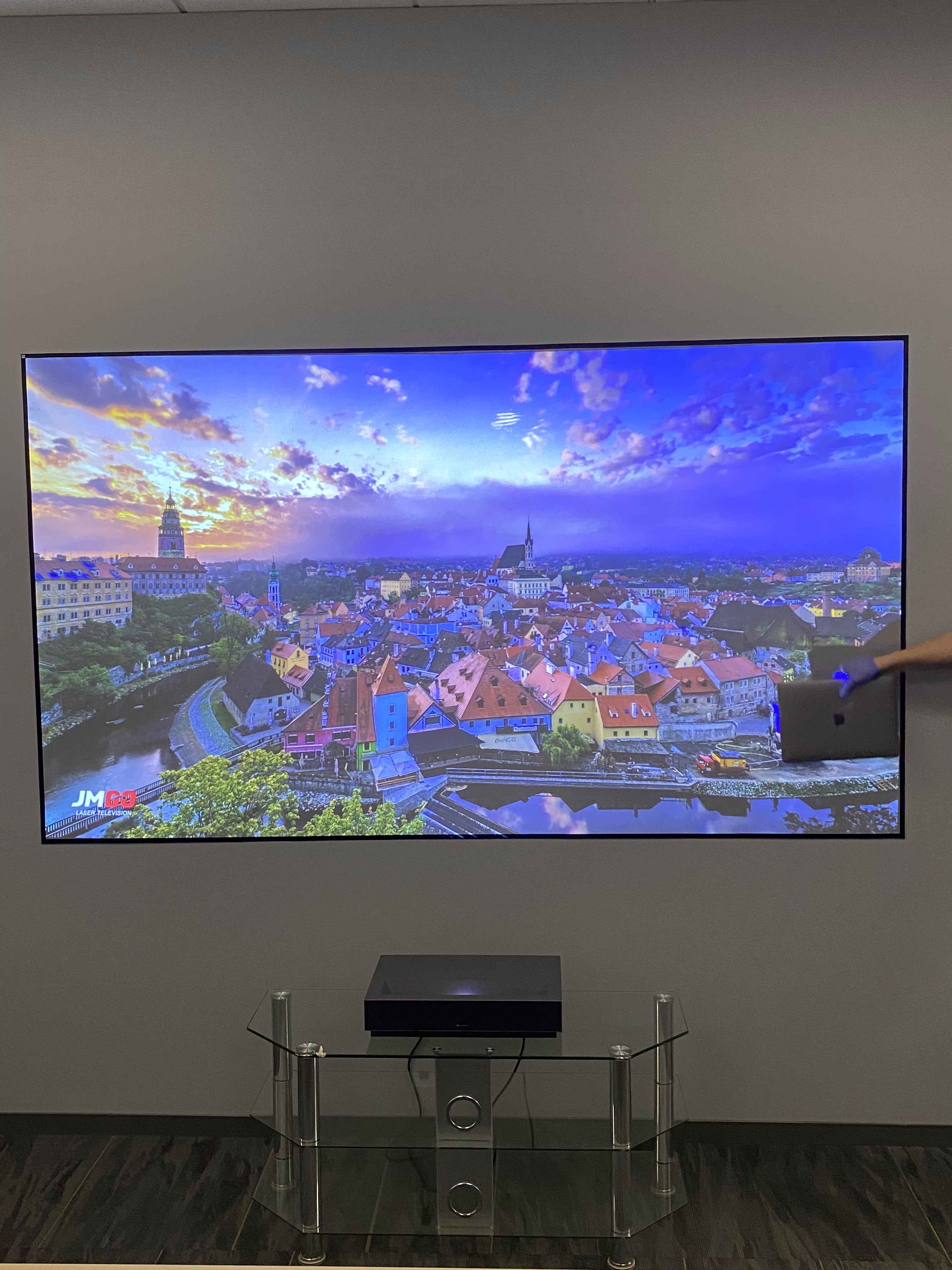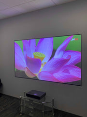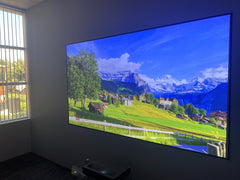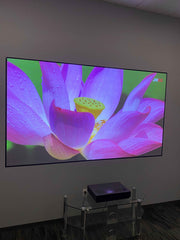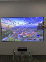 This is it. Our massive Super Bright Screen and 4K Short Throw Laser Projector. If you already own a UST (ultra short throw) laser projector, you can purchase the screen by itself. By adding the world's brightest screen to your setup, you can easily double or triple the real gain (brightness) of your existing projector. Alternatively, if you don't have a projector already, add our high quality laser projector to your bundle to get an all-inclusive home theater package.