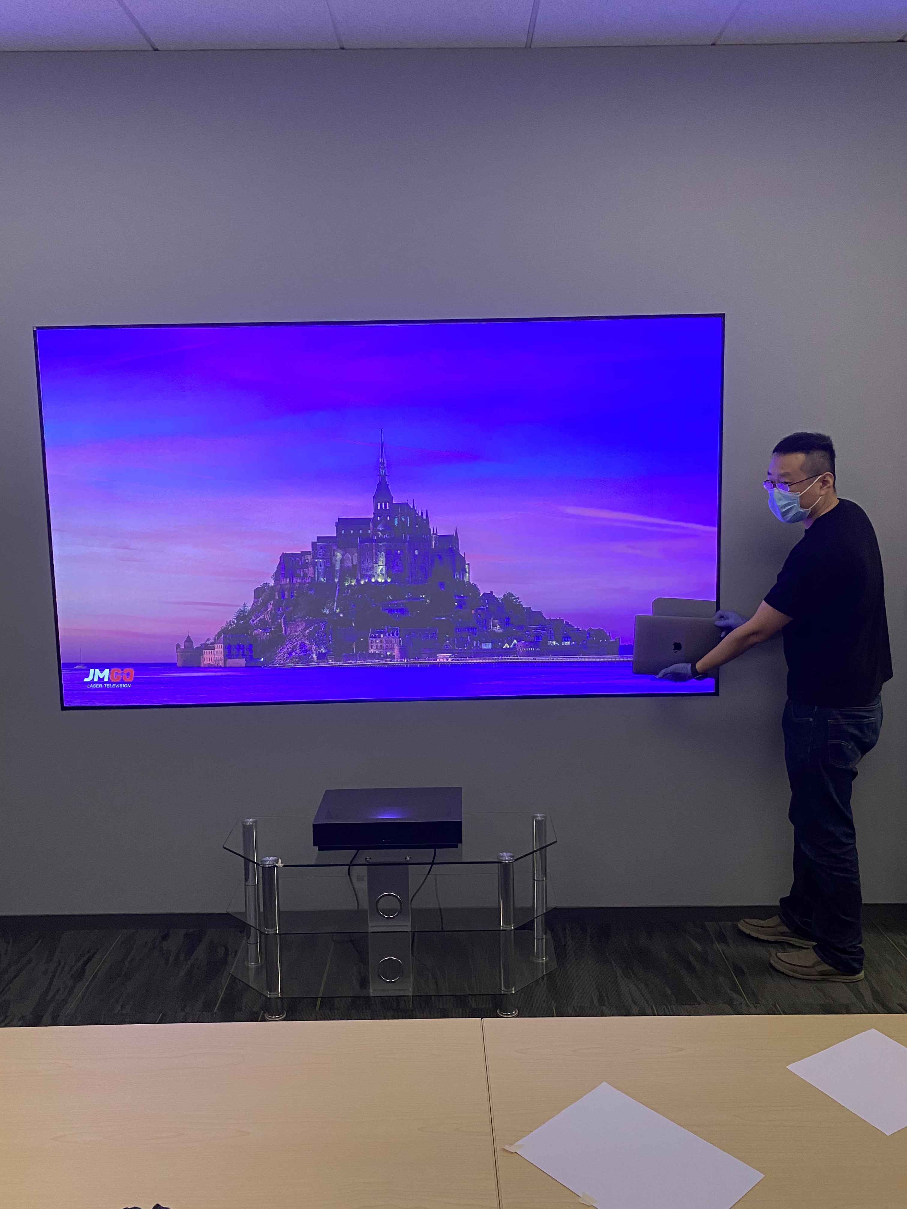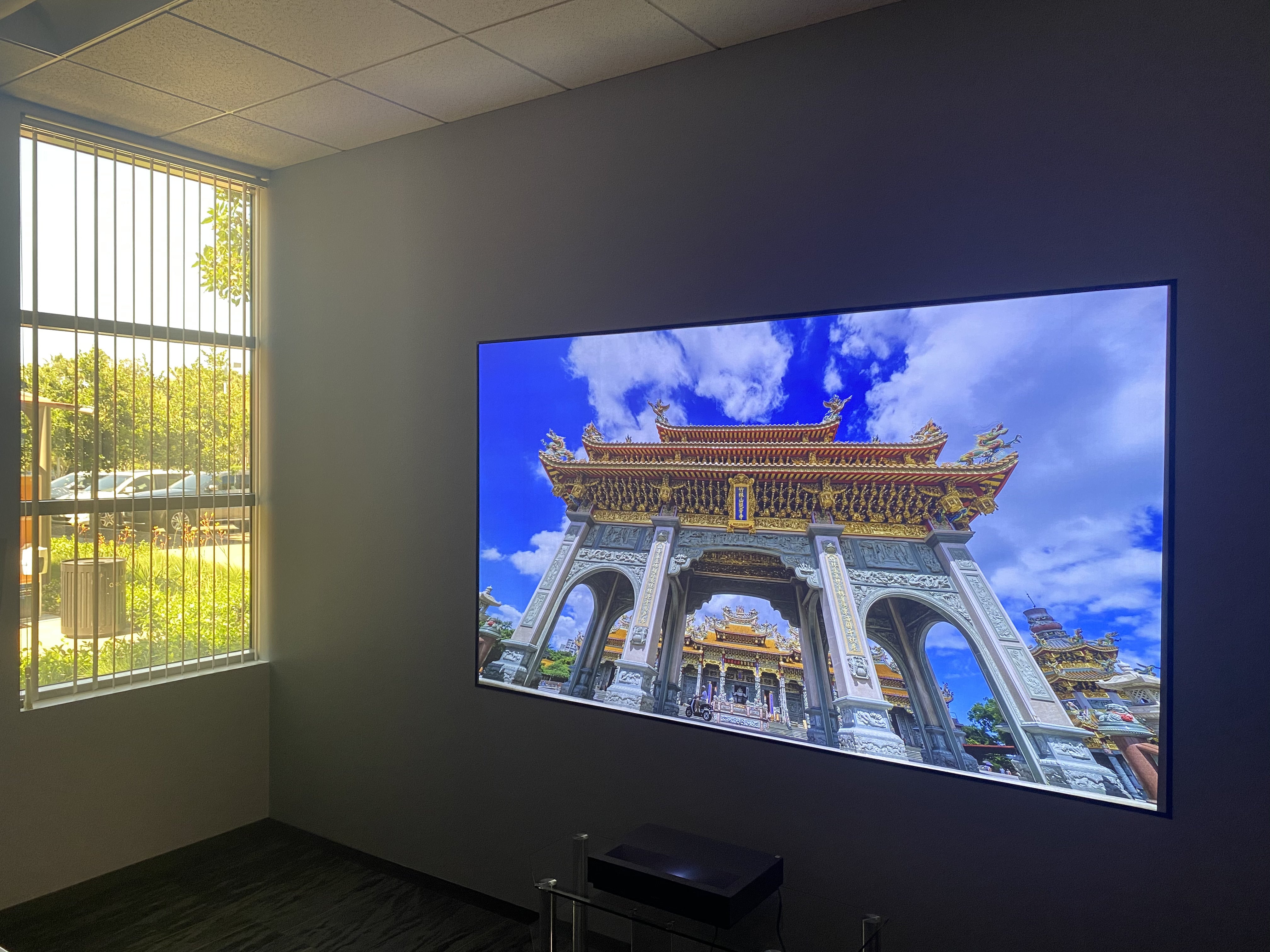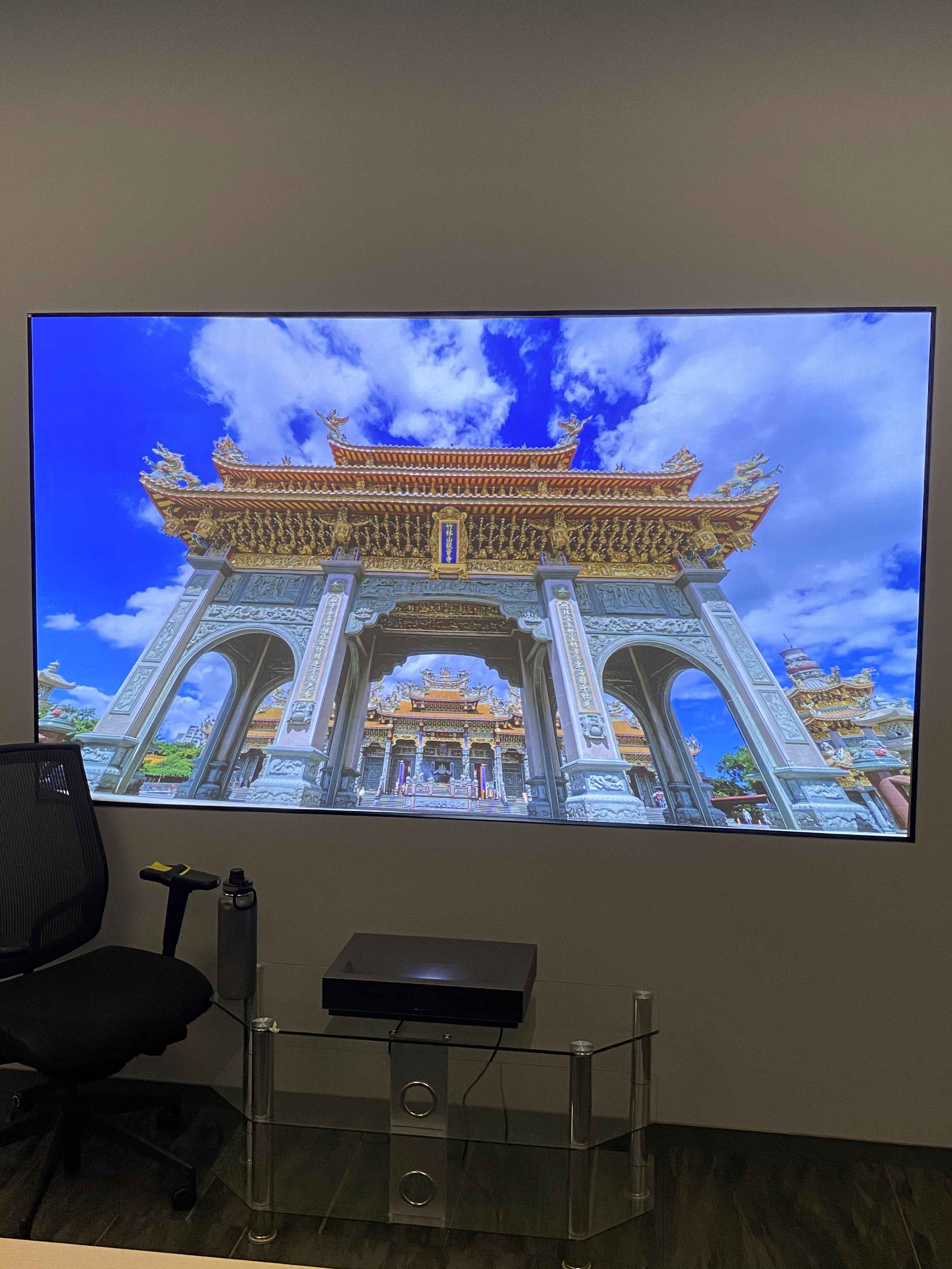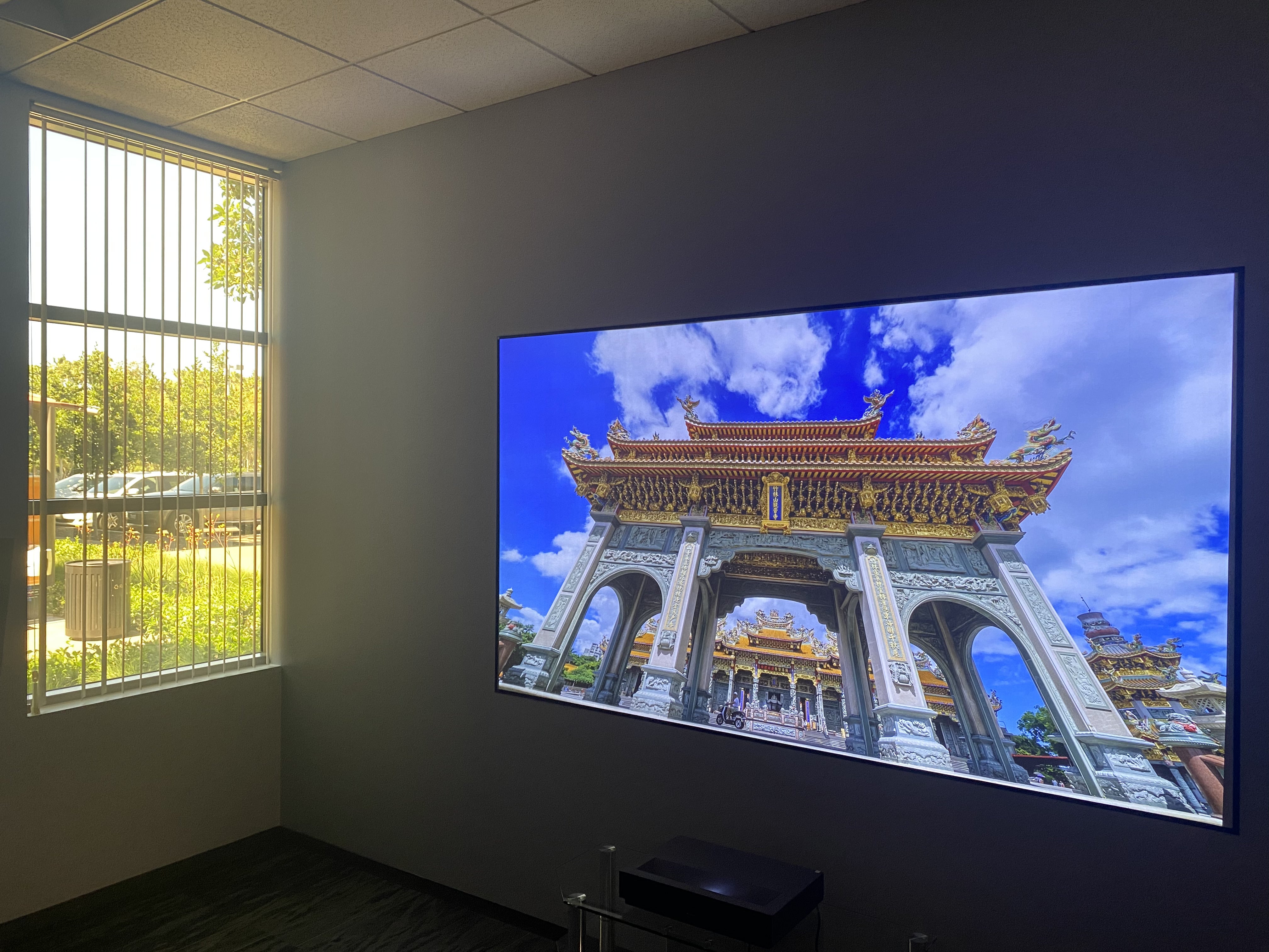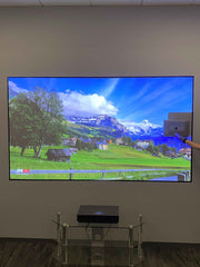 This is it. Our massive Super Bright Screen and 4K Short Throw Laser Projector. If you already own a UST (ultra short throw) laser projector, you can purchase the screen by itself. By adding the world's brightest screen to your setup, you can easily double or triple the real gain (brightness) of your existing projector. Alternatively, if you don't have a projector already, add our high quality laser projector to your bundle to get an all-inclusive home theater package.